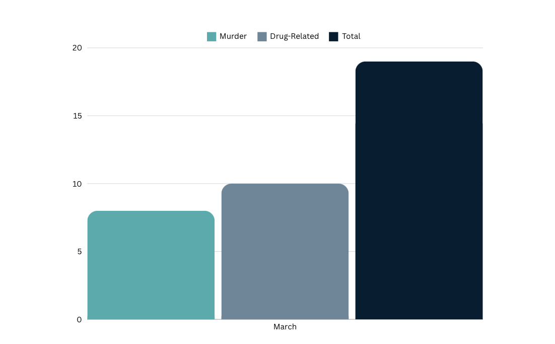 The monthly comparison of these arrests, as depicted in the graph below, indicates that the highest number of reports occurred in May, while the lowest number was in December.