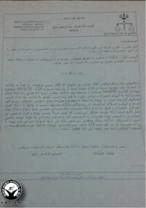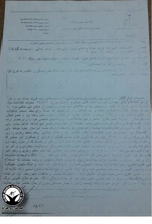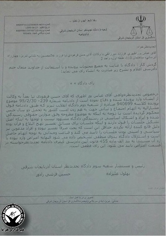 This sentence was confirmed in October in branch number 3 of appeal court of East Azerbaijan.