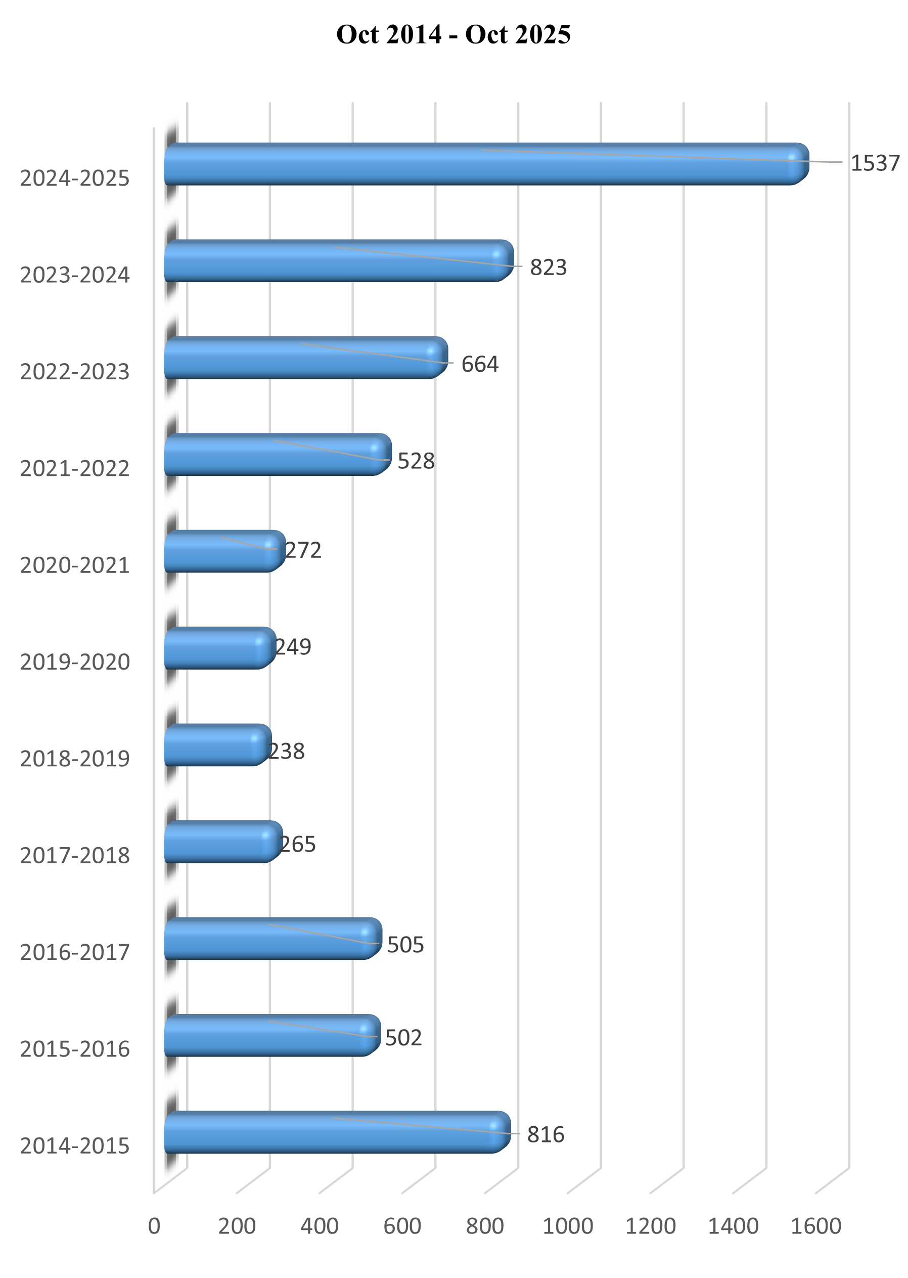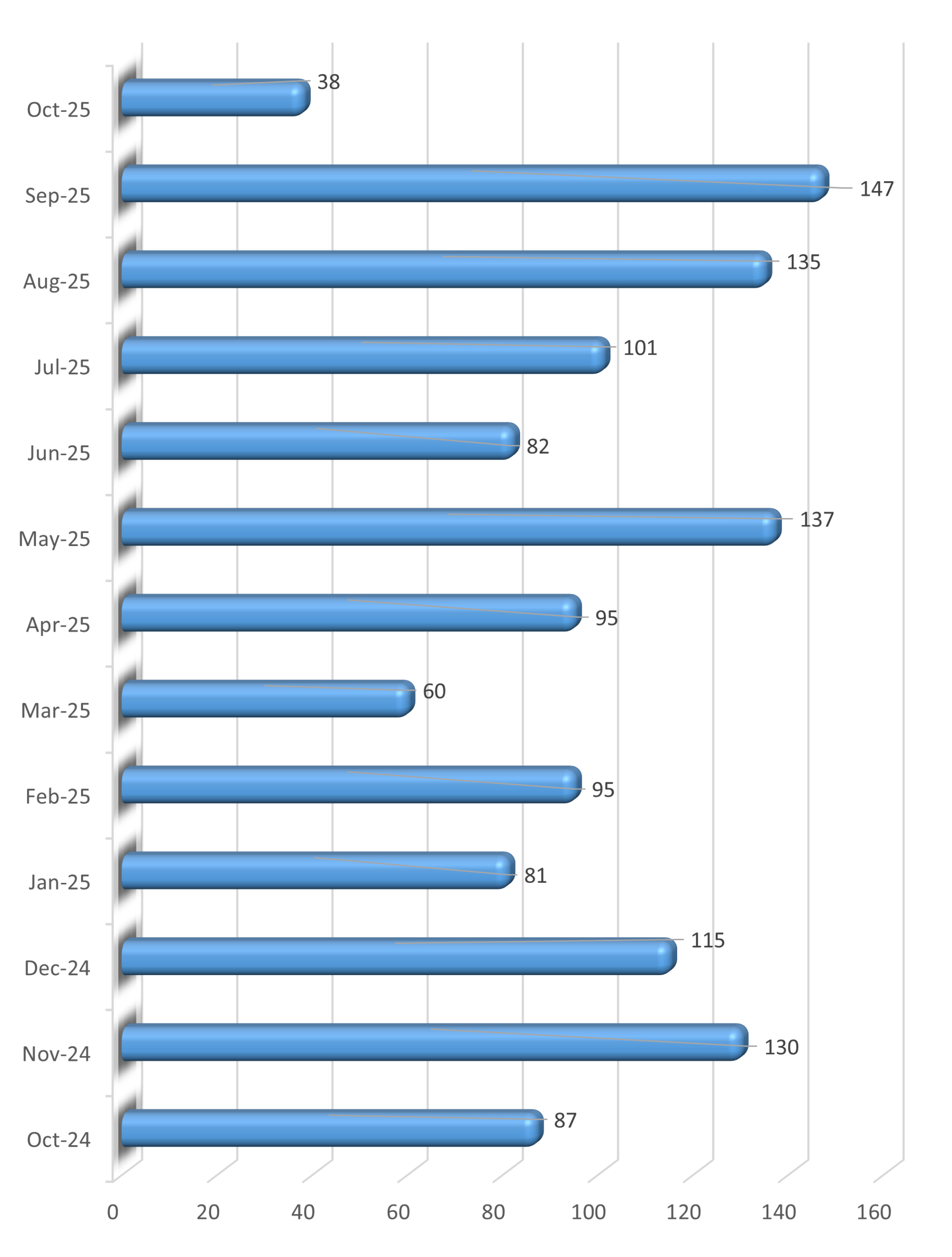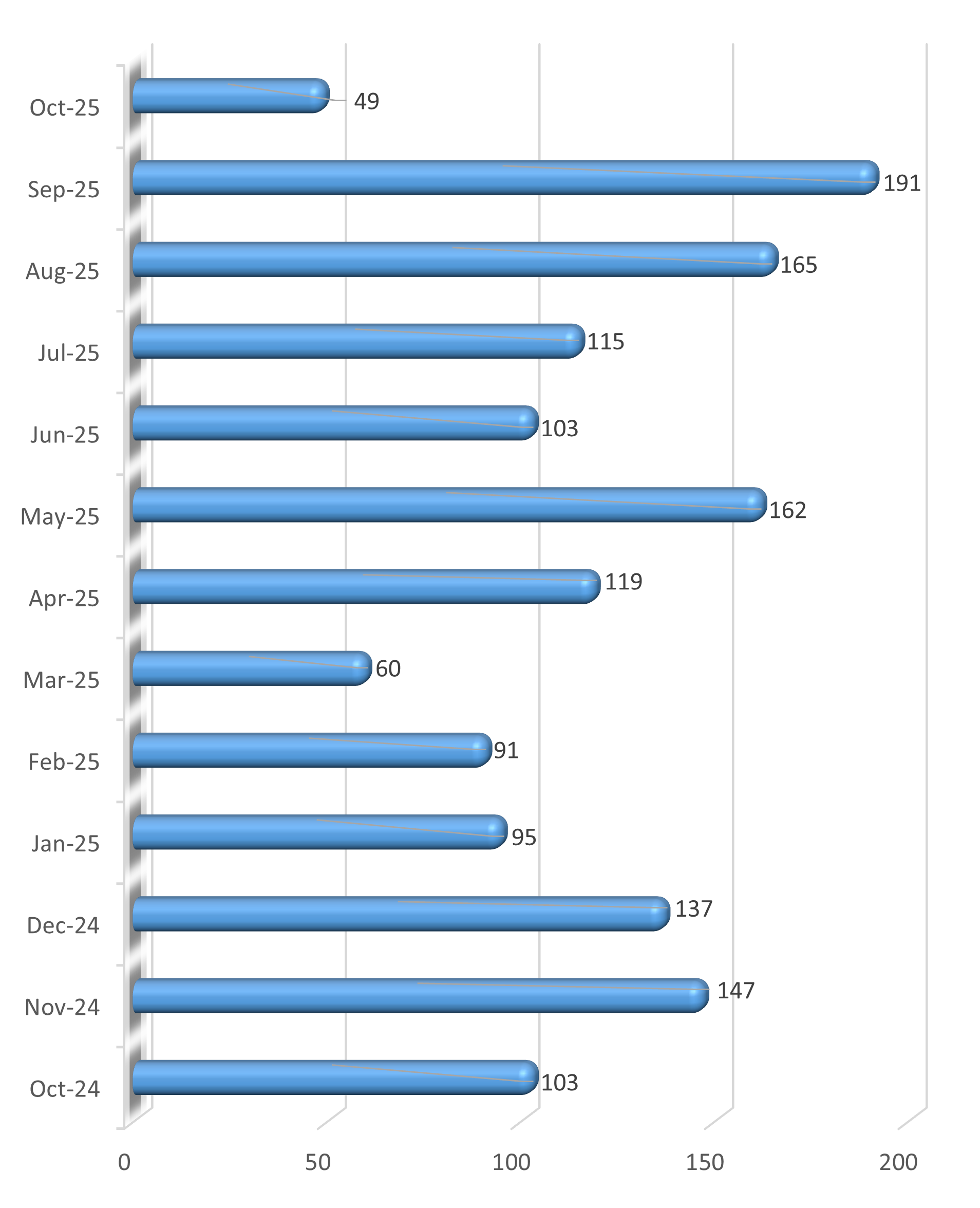As illustrated in the chart below, based on the number of individuals executed, the highest number of reports were published in September 2025, while the most significant drop in the number of reports occurred in October 2025. since only one-third of the month has passed, these statistics may change by the end of the current month.