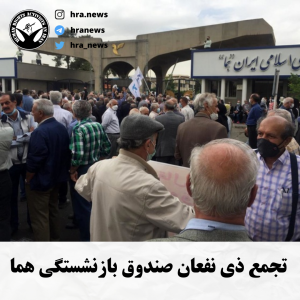 A group of stakeholders of Homa Airline Pension Fund gathered before the IranAir company. They protested against the merger of the fund and the Civil Servants Pension Organization.