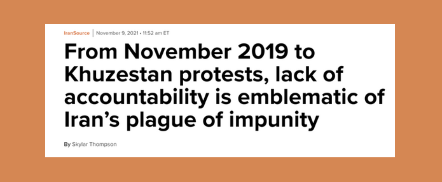 The blog post discusses the issue specifically through the lens of the November 2019 Protests and the Khuzestan Protests of this year. Protesters in both cases faced violent government suppression, and the actors most directly responsible have since faced little to no repercussions.