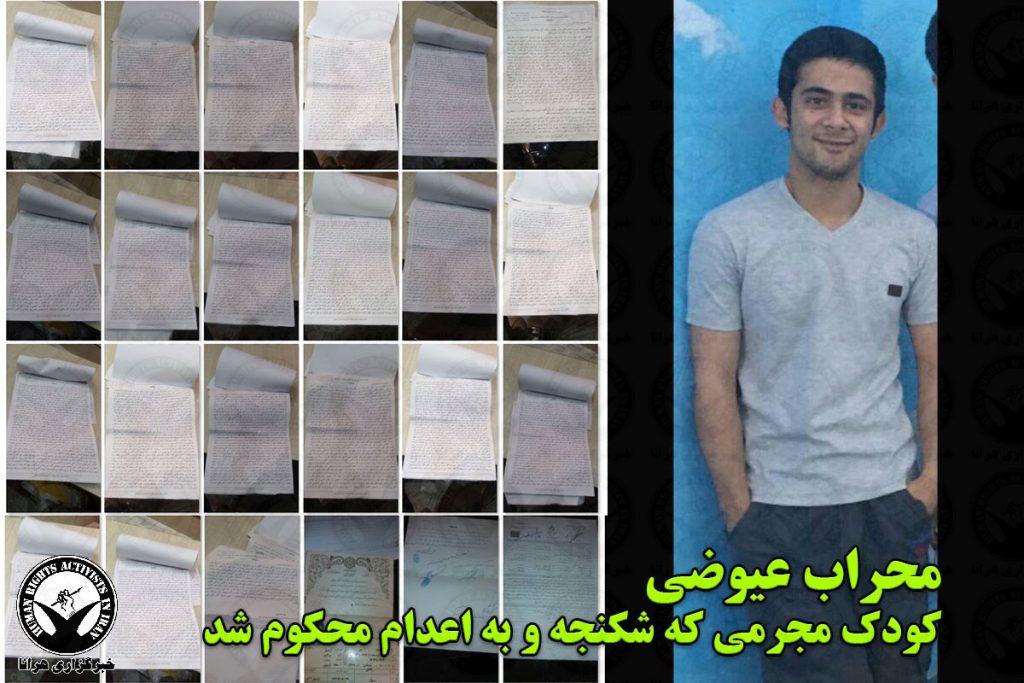 HRANA News Agency – Mehrab Eyvazi, juvenile offender from Ardabil was arrested at the age of 17 with nine other defendants. Mr. Eyvazi was accused of participation in kidnapping and rape. He was severely beaten at the police station and was threatened with rape by the police officer while he was naked in front of the camera. Mr. Eyvazi was sentenced to death, despite his young age. He believes that the verdict has been issued just based on his confessions which have been obtained while he was denied to access his family and lawyer and was subjected to torture and ill-treatment.