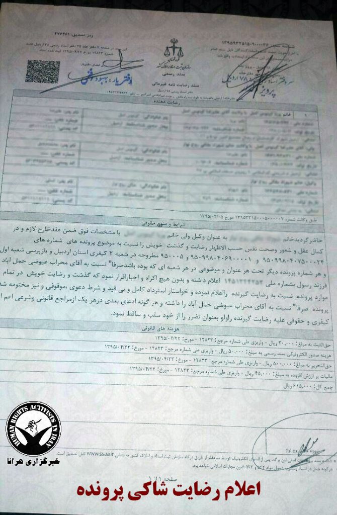 The family of Eyvazi explains that the plaintiff had announced their consent and also provided a document which pointed that the act of aggression has not been committed and the allegations against Mehrab have been caused by a misunderstanding.