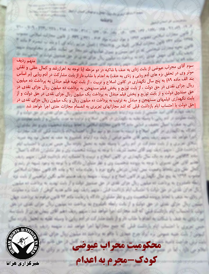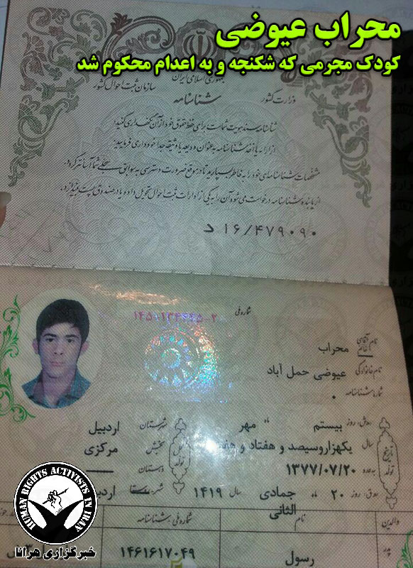 Branch two of the criminal courts for children and juveniles in Ardabil headed by the judge Kohi, was in charge of the case. The death sentence has been issued for three defendants of the case including Mehrab Eyvazi Haml Ababd son of Rasoul born on October 12, 1998.
