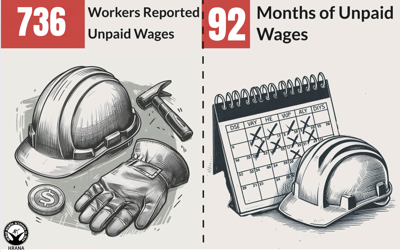ated accidents, with an additional 135 workers left injured. Moreover, 736 workers reported unpaid wages. This month there were also 2 strikes and 32 worker gatherings.