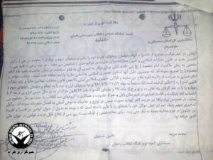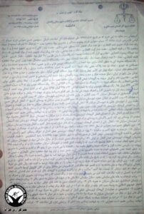 After 7 months we were transferred to the central prison of Zahedan. Within 1 year and 4 months in prison, we were taken to branch 6 of the Islamic Revolutionary Court headed by Shah Mohammadi for 2 times and we were asked each session 2 questions, each time we told that we were innocent and had to accept the charges as I said, however, Mr. Shah Mohammadi like intelligence wrote down that we had accepted all charges, while we had not accepted them.”