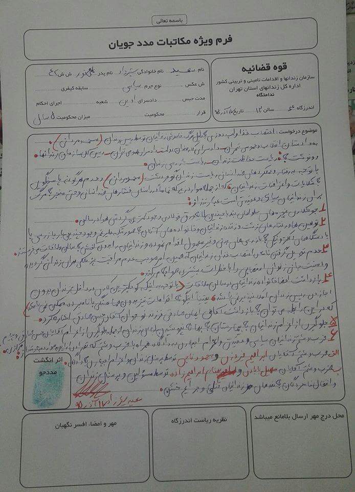 Mr. Shirzad has mentioned Mehdi Farahi Shandiz being beaten by the prison officials as an example of lack of security for prisoners, which he is protesting against.