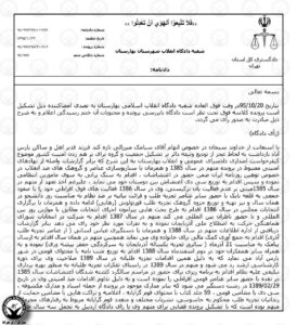 “Belief to establish a federal system, the struggle for free elections without fraud on the basis of international standards, defending the right of education in native language for all oppressed nationalities in Iran and having books and articles in the field of ethnic studies in the personal library,” were the evidences which the judge considered as “destructive and actions against the Islamic Republic of Iran.”