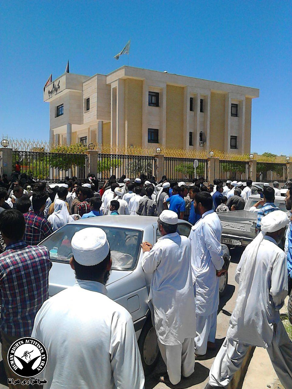 HRANA News Agency – After plumbing the prayer hall of Sunni citizens in Asadiyeh in Darmian city of South Khorasan province, they gathered to protest in front of the buildings of Justice and Governor on June 16.
