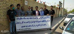A group of workers of Haft Tappeh Sugarcane Agro-Industry Co for the 41st consecutive day, as well as several young people from Qala-e-Chenan village of Kut Abdollah district in Khuzestan called for their demands to be addressed this Sunday.