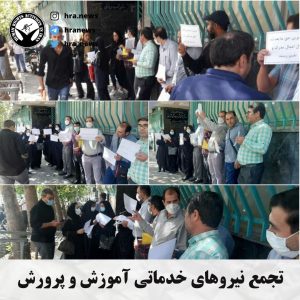 A group of service workers of the Ministry of Education gathered before the Ministry in Tehran to demand the job modification and working as educators as the Ministry had previously approved.