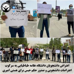 A group of students of Allameh Tabataba’i University protested against the suppression of students and prison sentence against Hasti Amiri, one of the law students at Allameh Tabataba’i University.