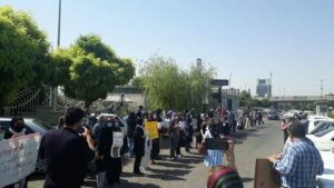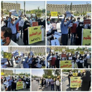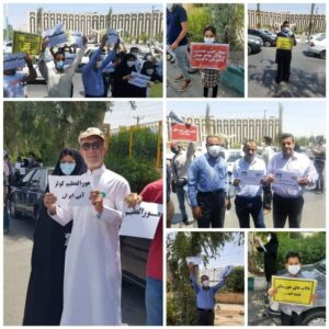 A group of Karnameh Sabz teachers (Teachers of Green Score Letter) protested for a seventh day and night in a row. Animal rights advocates in Qazvin, ranchers in Takab city in West Azerbaijan province, shareholders of the Rezvan Qom project, retirees in Khorramabad , Shush, and Ahvaz, a group of Shush farmers, a group of pest control workers of Haft Tappeh Sugarcane Company for several consecutive days, a number of school janitors and caretakers in different provinces, retirees of Khuzestan Steel Company in Khuzestan and Isfahan Steel Company in Isfahan provinces, staff of Qom Health Centers, young job seekers from the village of Maravneh in Ahvaz, workers of Khorramshahr municipal for the second day in a row, and taxi drivers in Zanjan all also held protest rallies this Sunday.