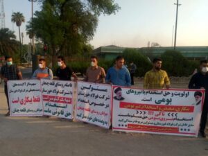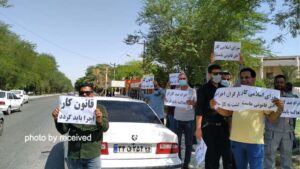 Several young job seekers in the Ghal’e Chan’an in Koot-Abdollah city, a group of workers of Kaveh Float Glass in Saveh, a group of fired workers of Khuzestan Pipe Manufacturing Company, a group of Shiraz Telecommunication employees, workers of the transportation unit of South Zagros Oil and Gas Production Company in Shiraz, Agar and Delan, a group of Khorramshahr municipality workers, and a group of pest control workers of Haft Tappeh Sugarcane Agro-Industry Company all held labor protests on between Friday and Saturday.