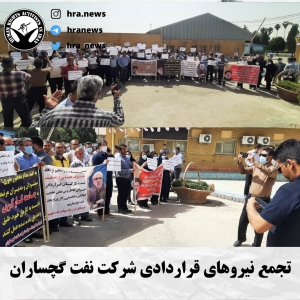 For the third consecutive day, the workers of Gachsaran Petrochemical Company went on strike and gathered before the headquarters of Gachsaran Oil and Gas Company. One of the protestors told HRANA: “Today in this gathering, we the workers who have temporary job contracts ask for levelling up wages adequately because this 10 per cent increase is less than the annual increase in the minimum wage.”