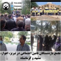 The Social Security pensioners gathered and protested before the Social Security Organization’s offices in Ahvaz, Mashhad, Kermanshah, Ardabil, Rasht and Arak.