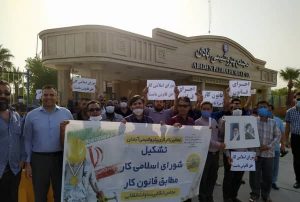 The workers of Abadan Petrochemical Company assembled at the company premises to demand the right to form an Islamic Workers’ Council, as the labor code allows, the adjustment of their contracts according to their job classification plans, job security, preservation of the dignity of workers and an end to punitive measures towards employees who advocate for their rights.