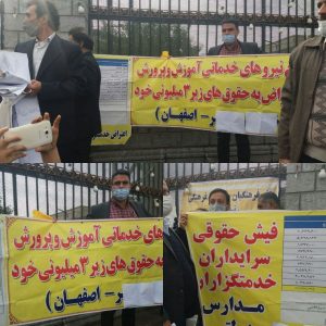 On the same day of nationwide teachers’ protest, in Isfahan, the school concierges and service workers assembled in the front of the building of the Department of Education to ask for their demands.