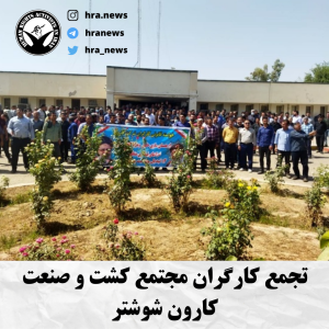 The workers of the Agro-Industry Company Karoon Shushar gathered for the second consecutive day in front of the company office building.