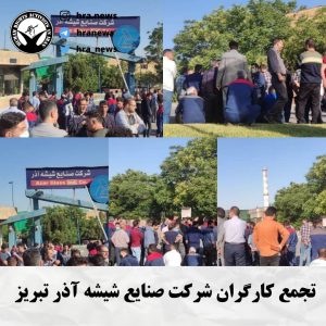 The workers of Tabriz Azar Glass Industries Company held a protest in front of the company to demand several months’ unpaid wages.