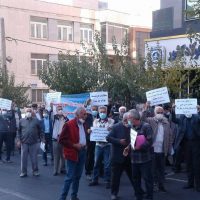 For the second day, the retirees of the pension fund of the steel corporation Fulad assembled in front of the pension fund building in Tehran.