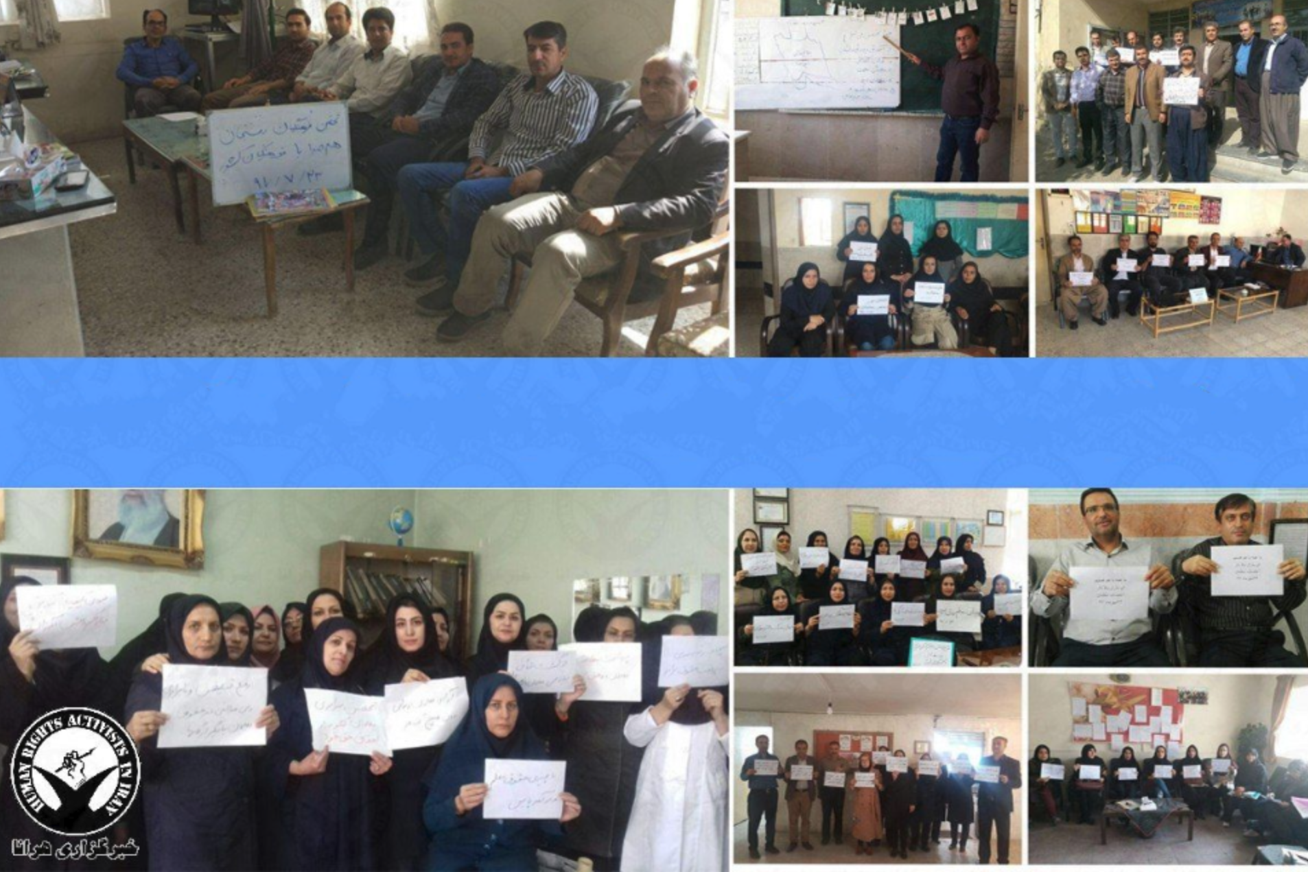 Iranian teachers staged sit-ins both yesterday and today, October 15th across the provinces of Fars, Razavi Khorasan, North Khorasan, Kermanshah, Kurdistan, Ilam, East and West Azerbaijan, Mazandaran, Tehran, Isfahan, Kohgiluyeh and Boyer-Ahmad Province, Hamedan, Qazvin, Bushehr, Alborz, Lorestan, and Khuzestan.